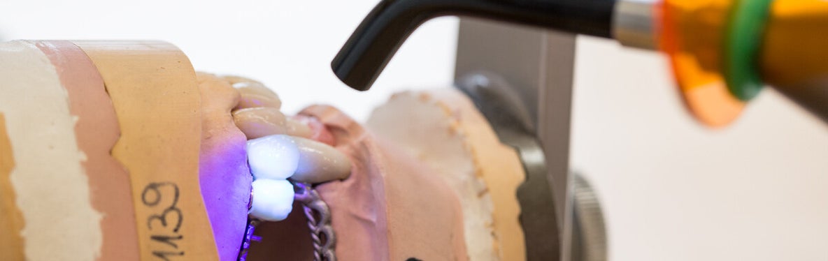 Präzise Digitalisierung der Arbeitsmodelle für die folgende Bearbeitung (z.B. Fräsen) der unterschiedlichen Materialien. Anschließend individuelles Design von Kronen und Brückengerüsten. Diese werden aus homogenen Materialblöcken herausgefräst und danach individuell mit Keramik verblendet.